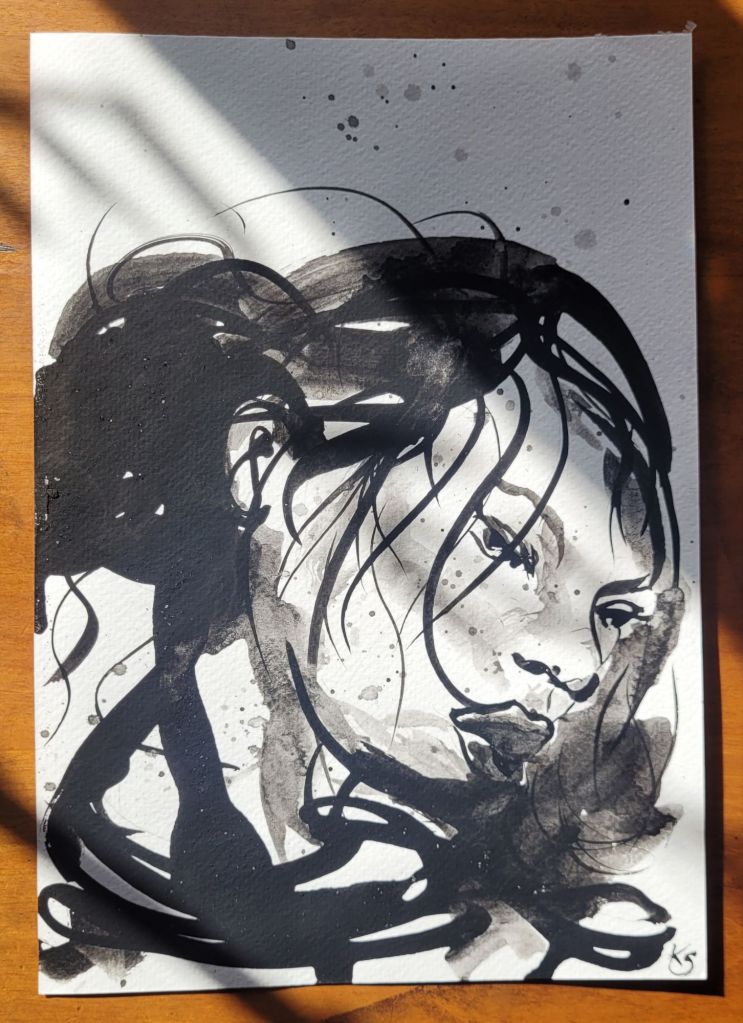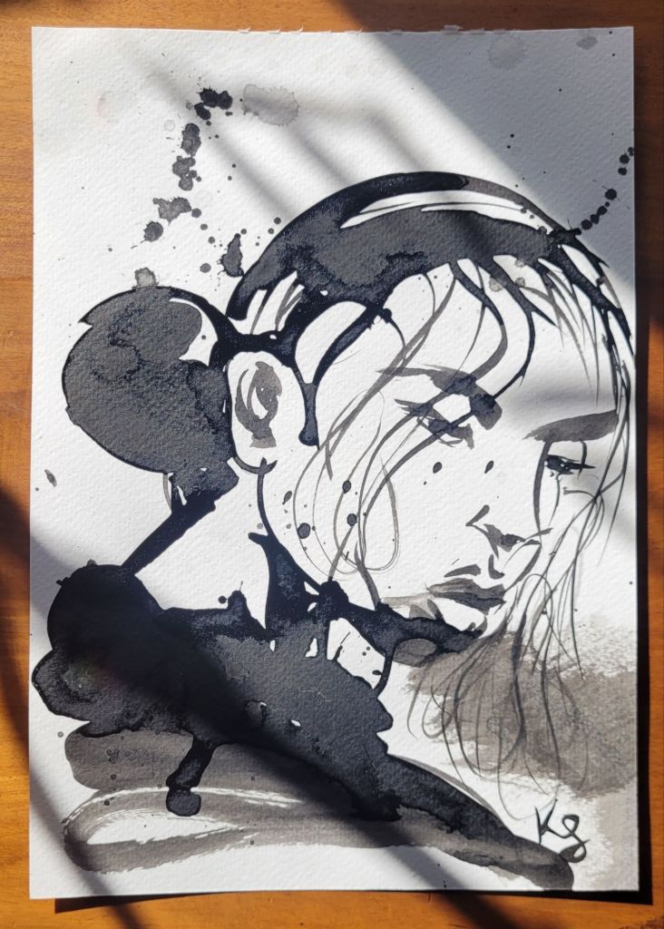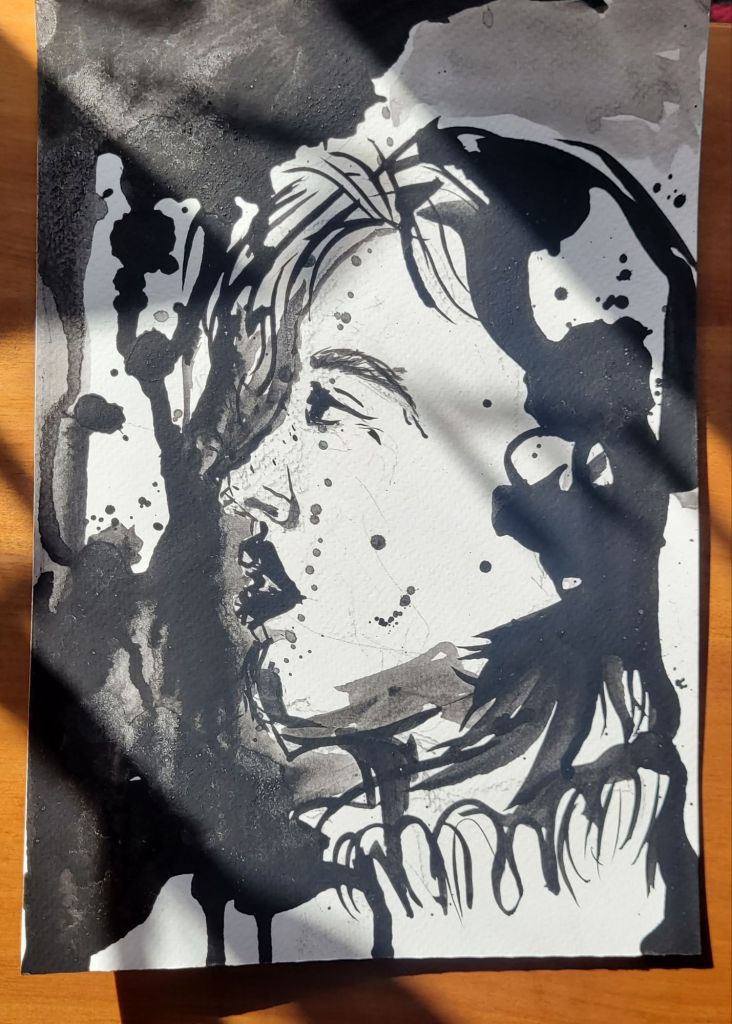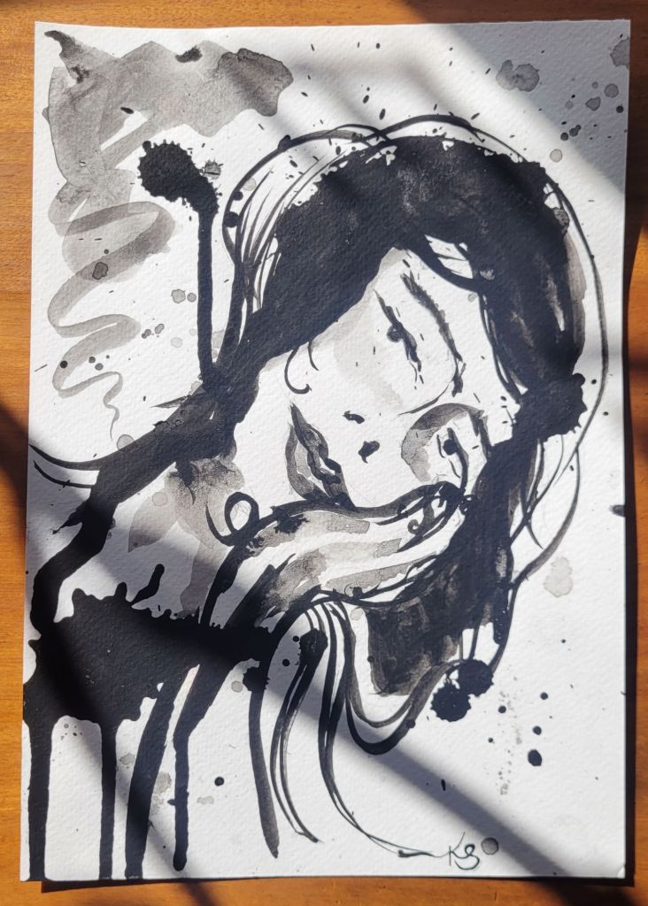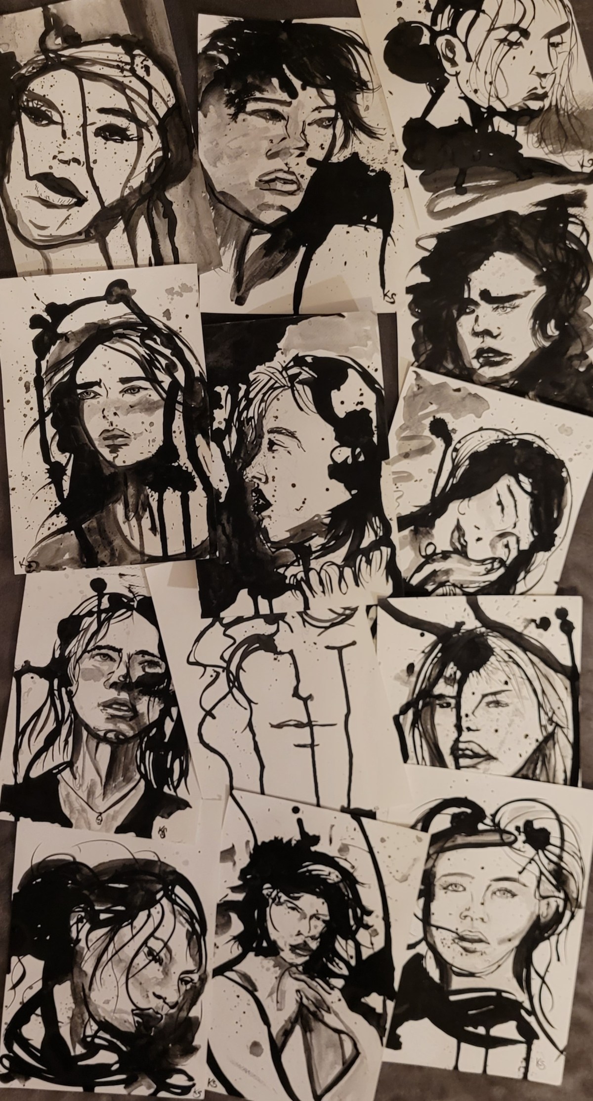 Noir: A small collection of spilled ink pieces, photographed on a sunny day