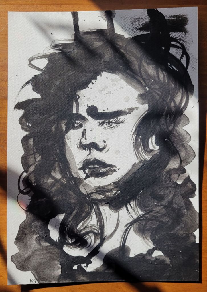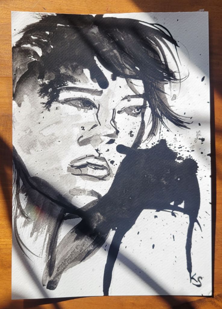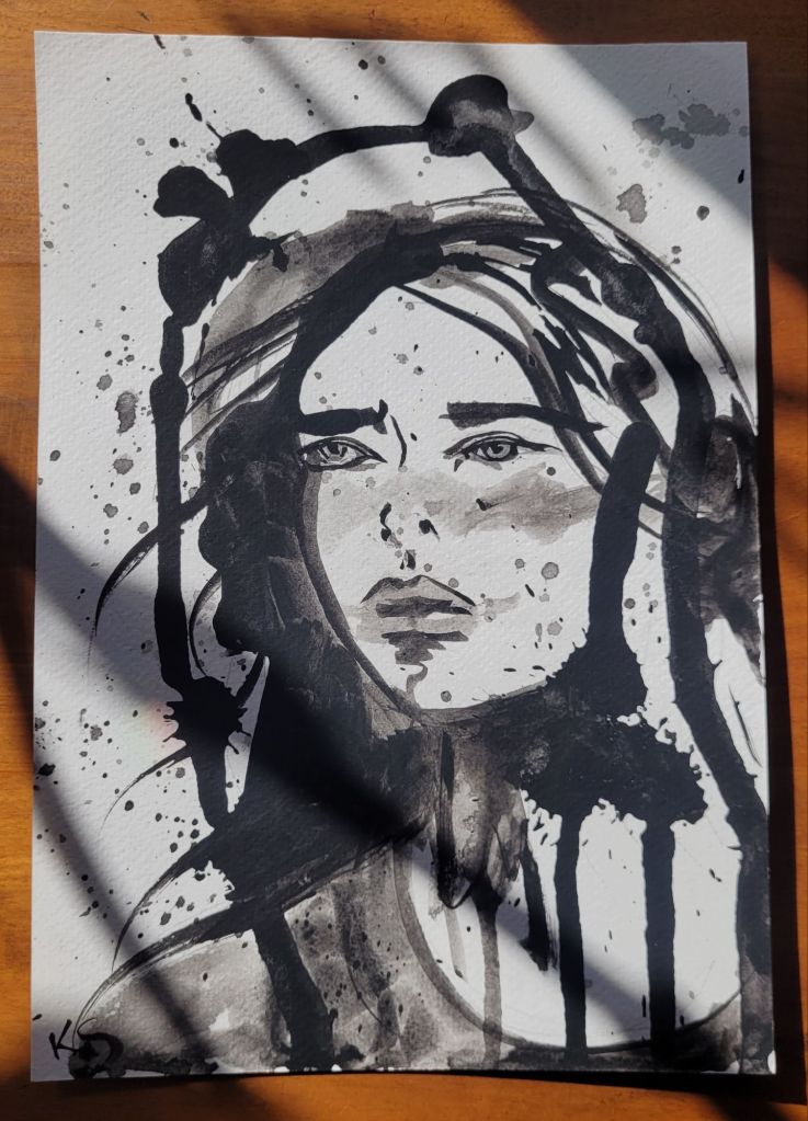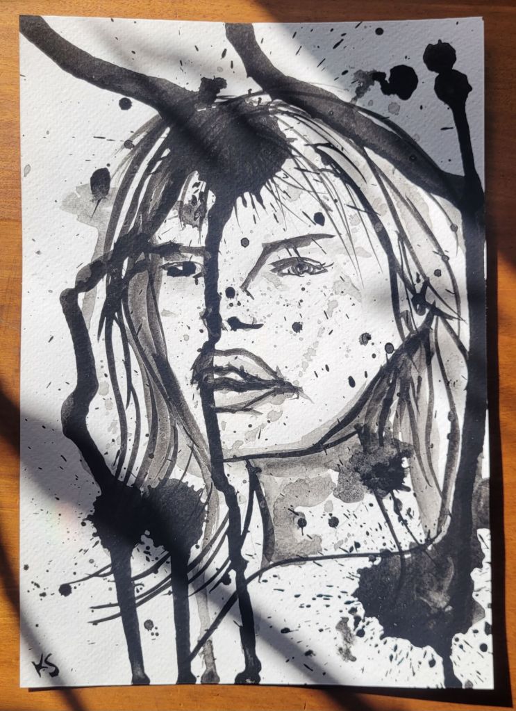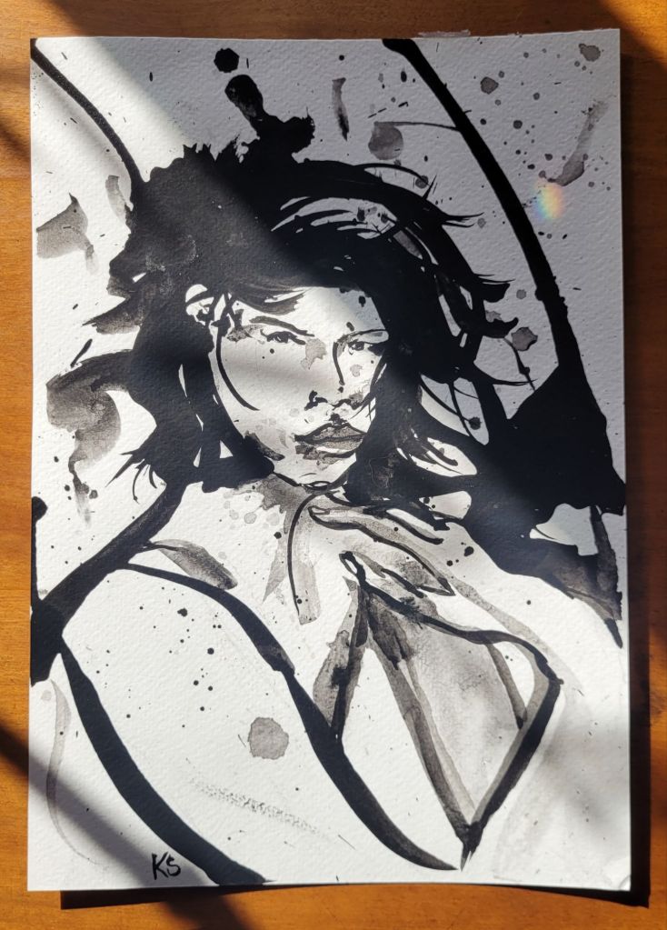 Noir: A small collection of spilled ink pieces, photographed on a sunny day