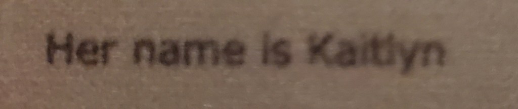 Kaitlyn holds Celtic and Greek heritage and means “pure.” Samways translates to “semi-wise.” She is The Pure Halfwit by birthright.