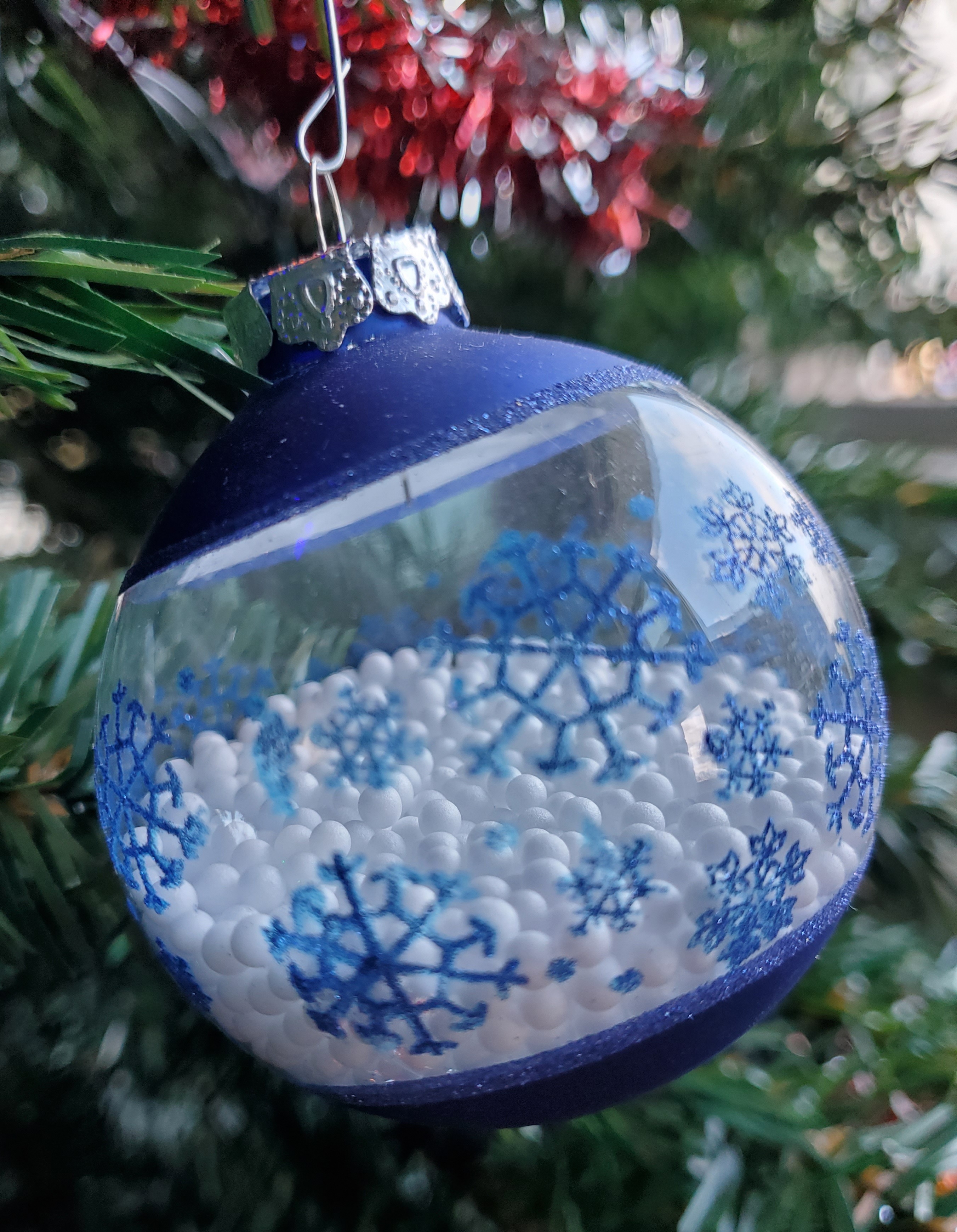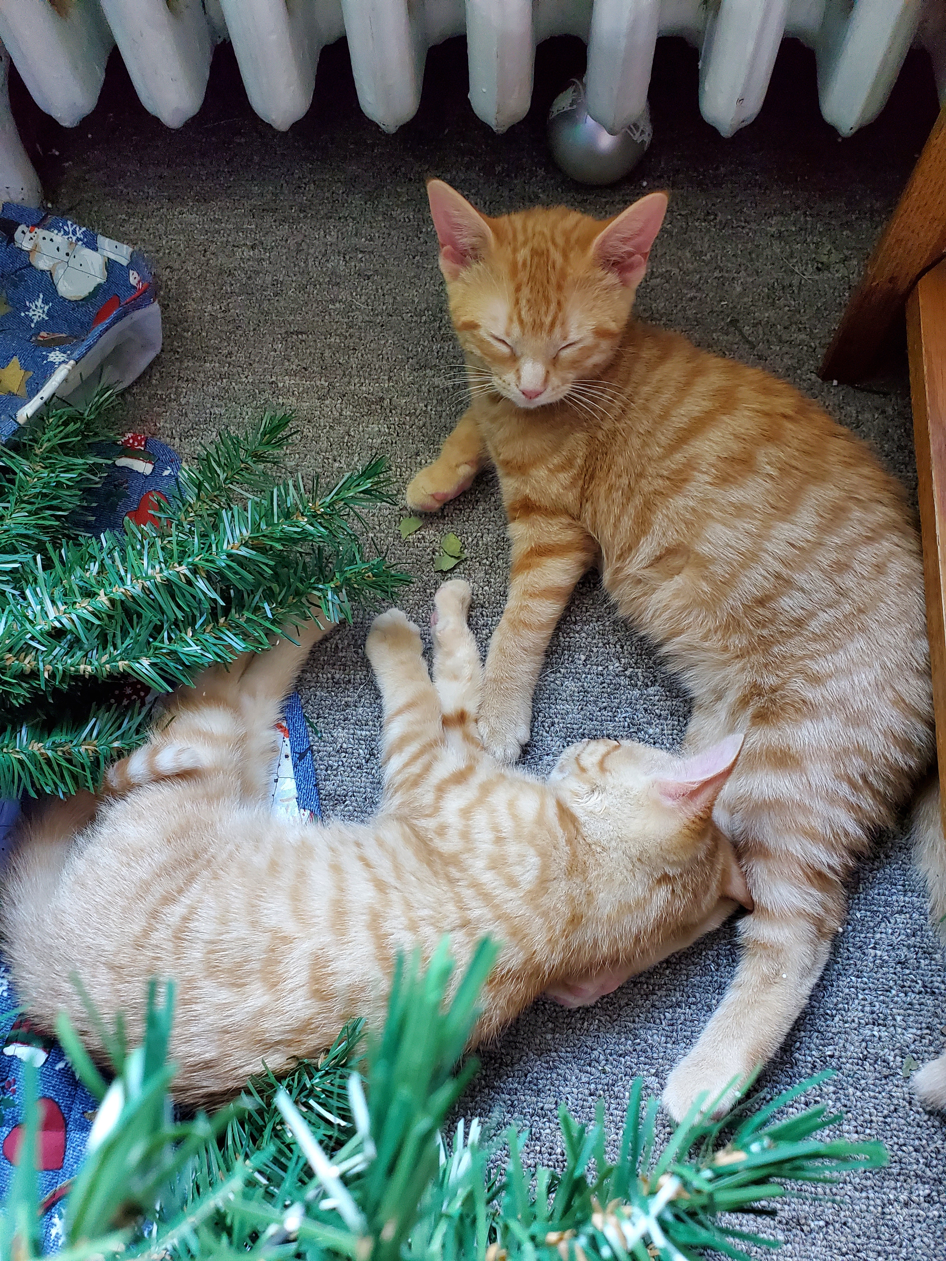 The lovely Grace & Frankie wanted a White Christmas inside the house, so they emptied one of my ornaments all over the floor. After cleaning up the best I can, I’m still finding styrofoam “snowflakes” all over the place!