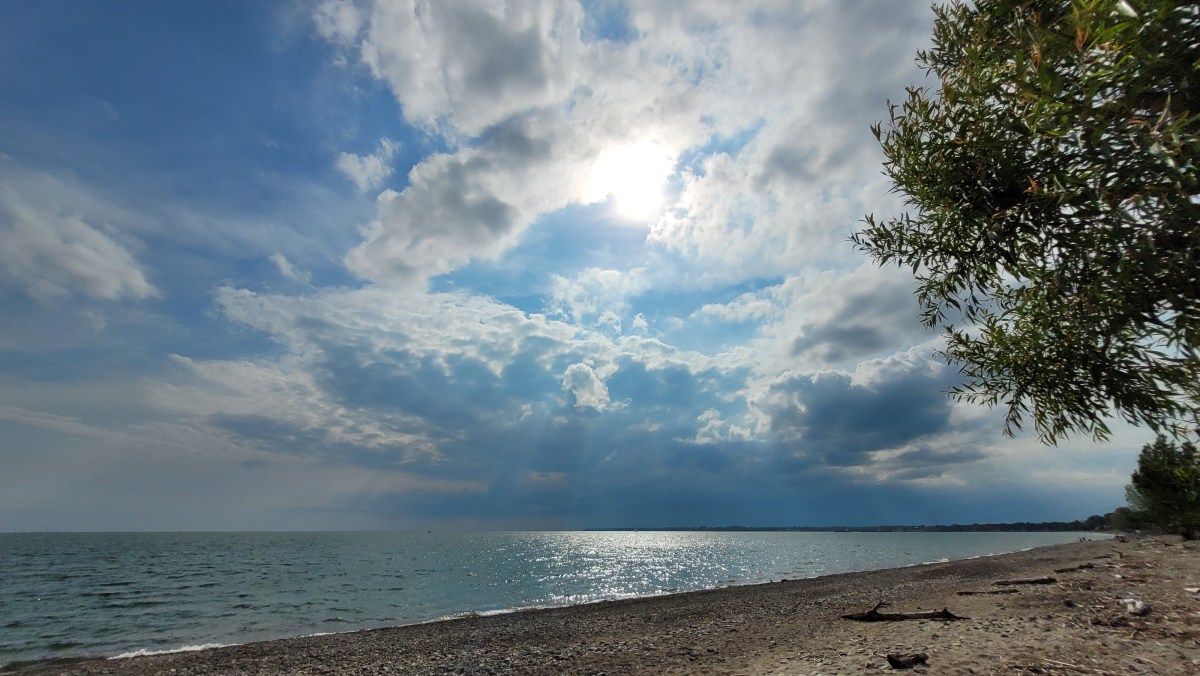 I look up and down and see that in the sky, reflected back, a different sea, a cloud soaring condensation ready to transform at any moment, dark and massive holding deceptive weight threatening to rise the tides and drown us all