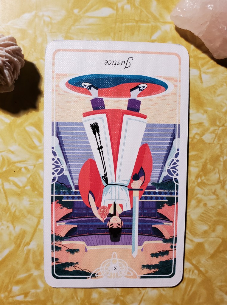 I believe in Yoshitani’s deck, Justice is illustrated with the Amhaeng-Eosa legend which speaks to incorruptible agents used to secretly inspect government officials. It represents the punishment of the corrupt and promotion of the deserving.
